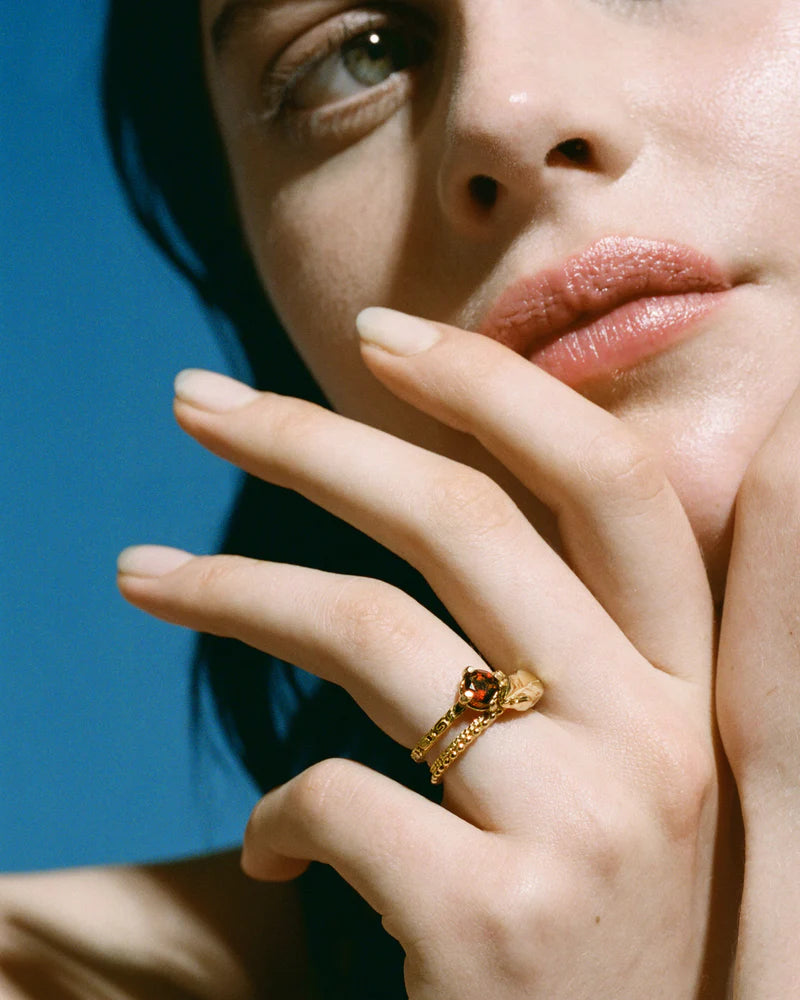 Deze sterling zilveren ring met granaat verenigt liefde voor het imperfecte met de symboliek van de granaat, die staat voor liefde en passie. De organische vorm weerspiegelt de eigenzinnige signatuur van Wouters & Hendrix.