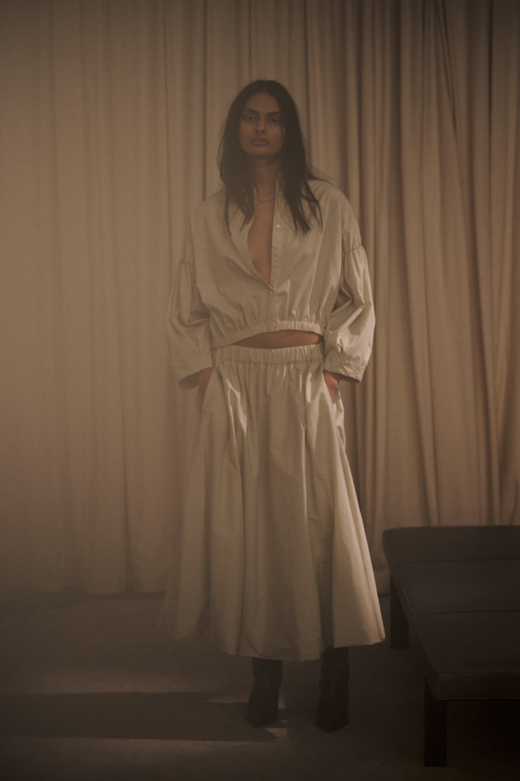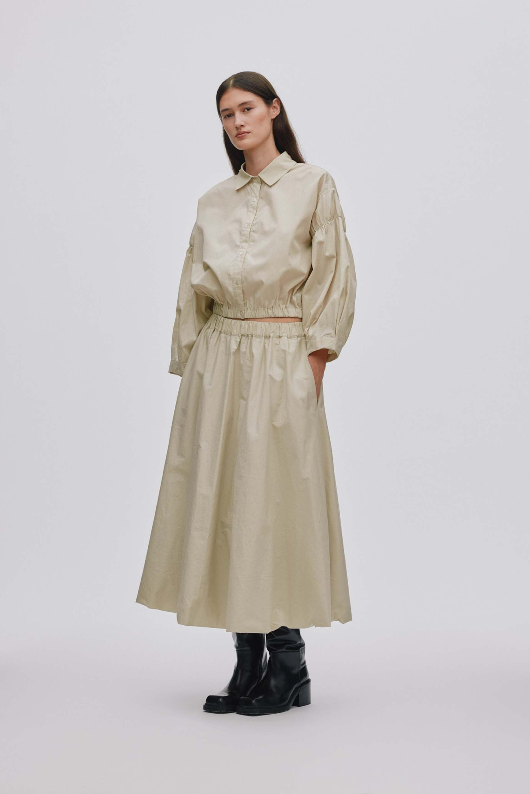Dit popeline overhemd heeft een tijdloze uitstraling en een cropped snit met subtiele plooien. Een moeiteloos chic stuk voor elk seizoen.