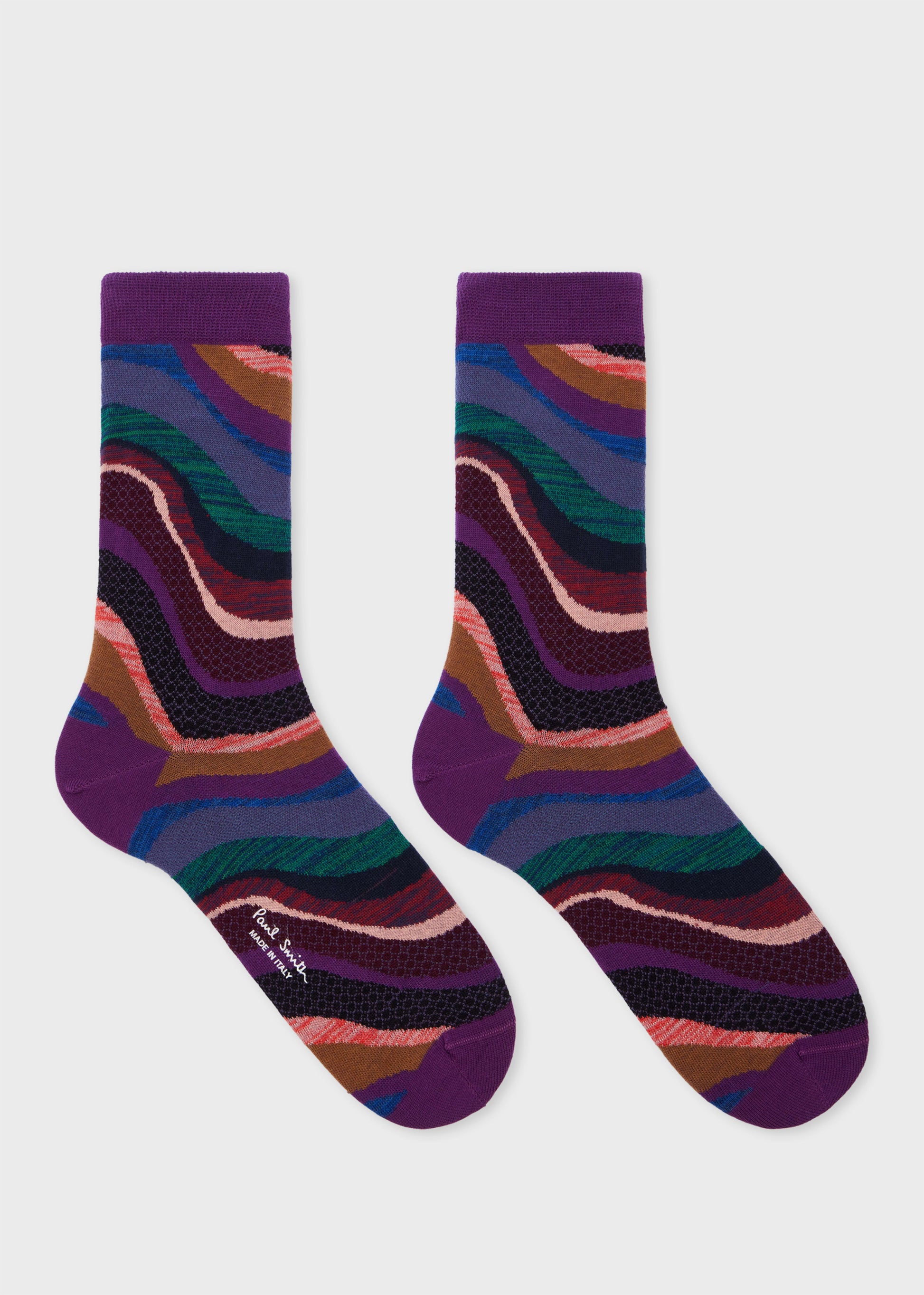 ‘Midnight Swirl’ sokken in katoenmix, gemaakt in Italië. Voorzien van contrasterende hiel, teen en ribdetails voor een stijlvol en kleurrijk accent.