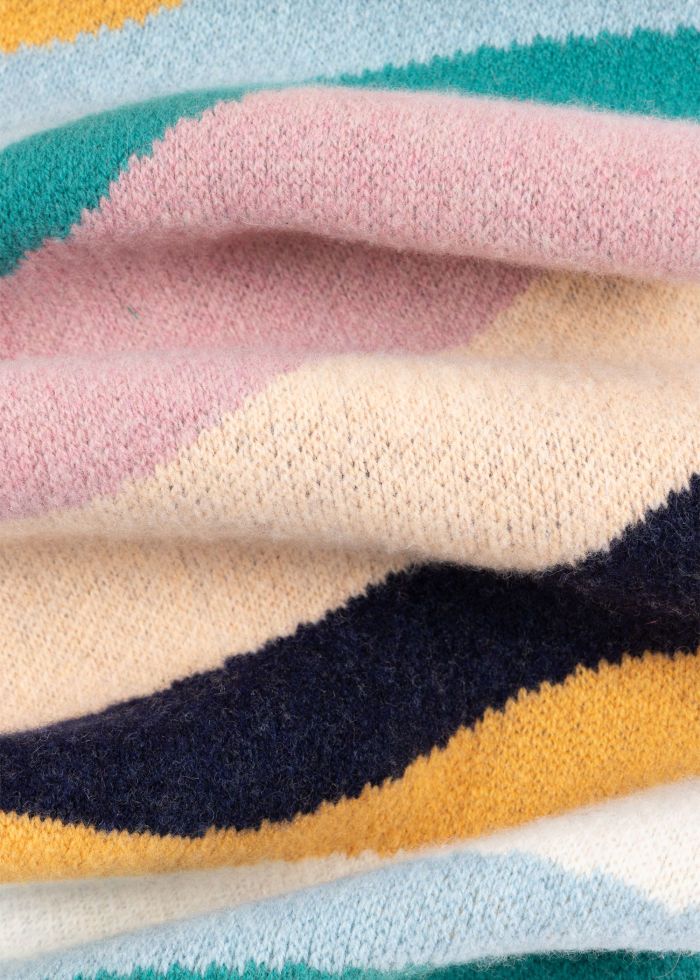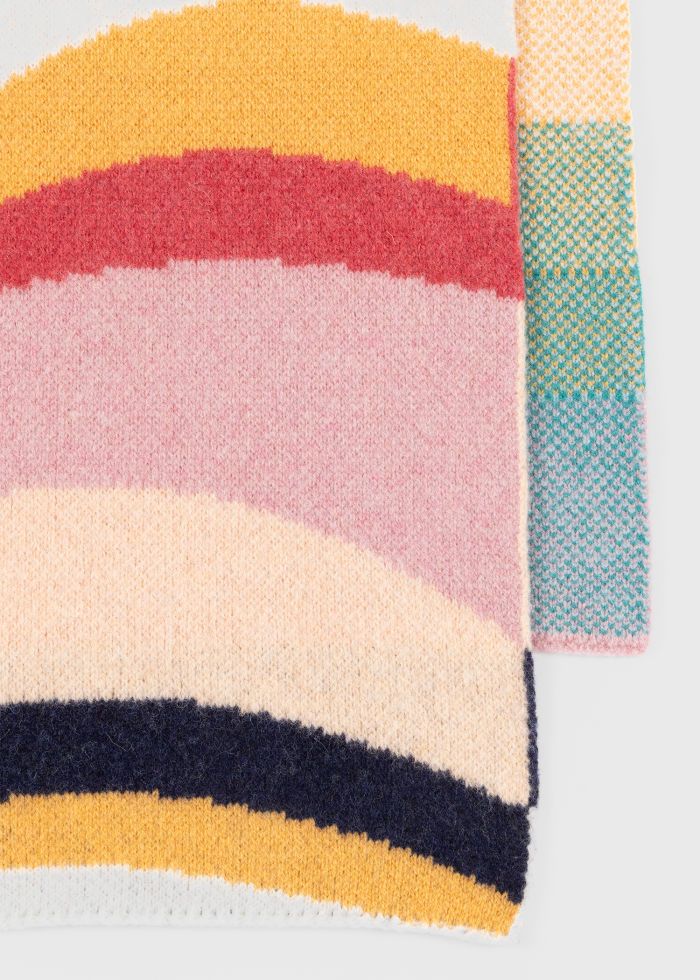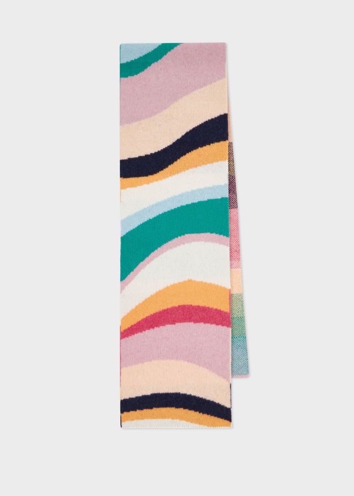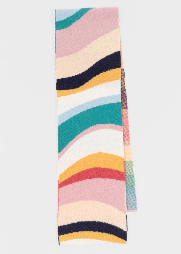 Pastelkleurige Swirl sjaal in 100% lamswol, gemaakt in Groot-Brittannië. Warm en stijlvol, perfect om elke outfit een uniek accent te geven.